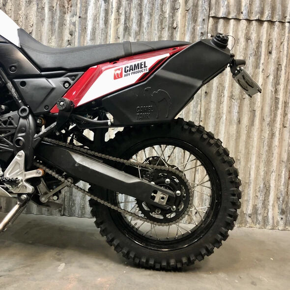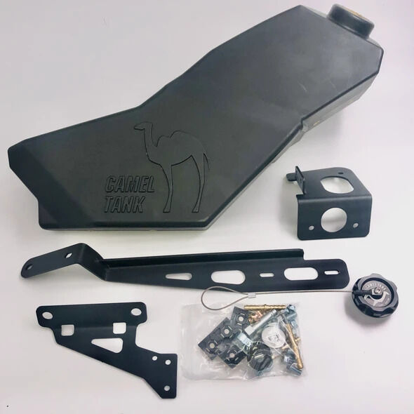We can't help you with the water but we definitely can with the fuel. Placed on the left side of the bike, opposite of the exhaust will sit your Camel Tank. Occupying otherwise unused space, the tank adds 5 Litres (1.3 gal) of extra fuel to your capacity for a total of 21 litres. That's an additional 80-120 km (50-75miles) of extra fun before you need to start looking for a fuel station!