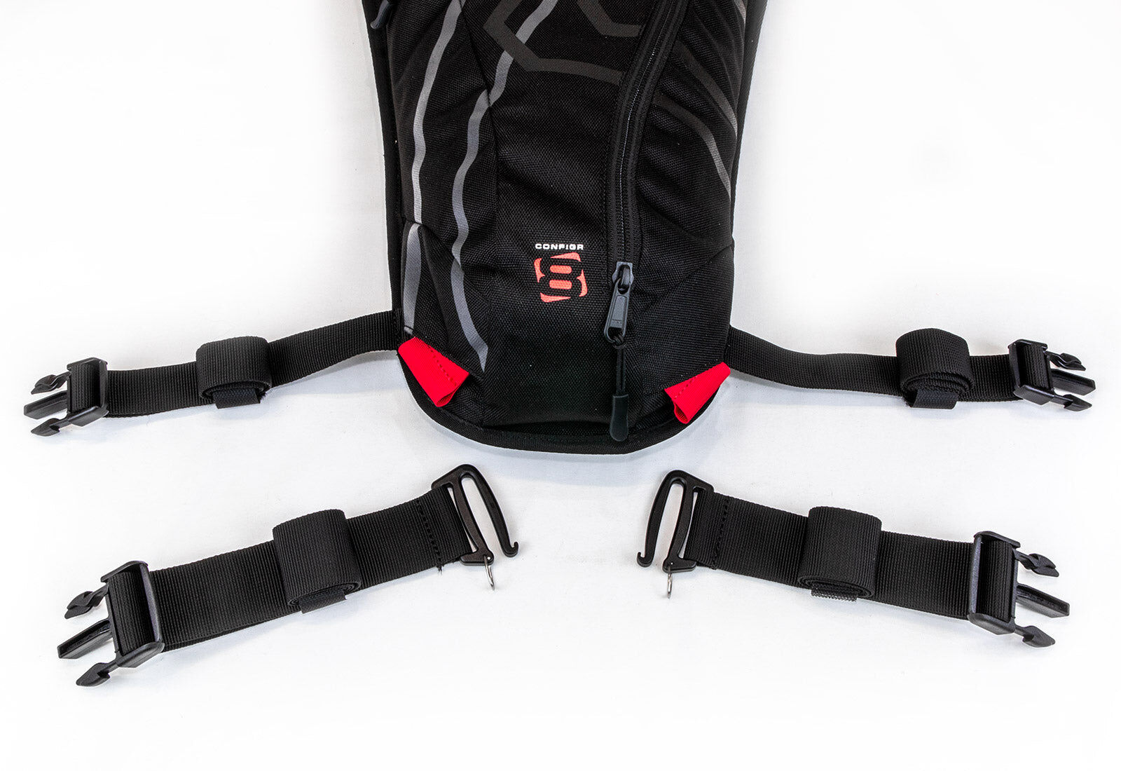 A removable waist belt allows for extra secure fit (if needed) and seamless integration into Configr8 options available for this pack.
